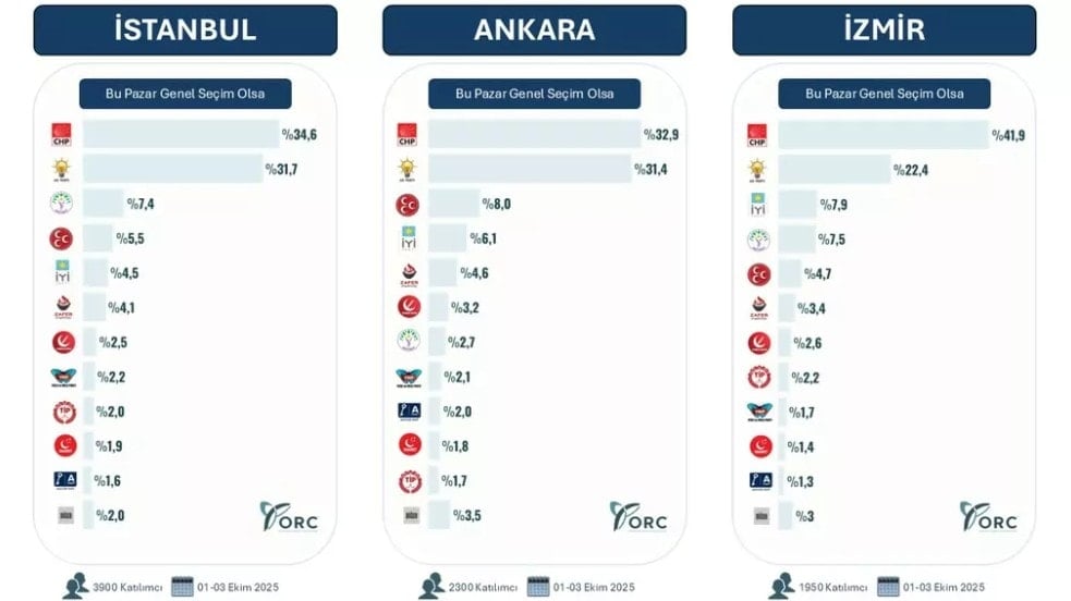 3 büyükşehirde yapılan araştırma, partilerin mevcut durumunu karşılaştırmalı olarak ortaya koydu. İşte detaylar:
