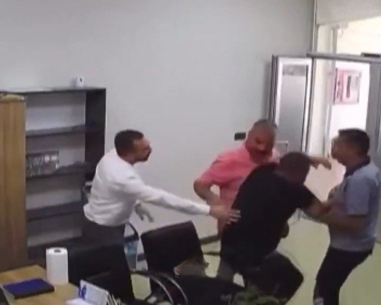 Ancak bu kez Mercimek önündeki sehpaya yumruk atınca, odada bulunan bir şahıs da Mercimek’in suratına yumruk attı.