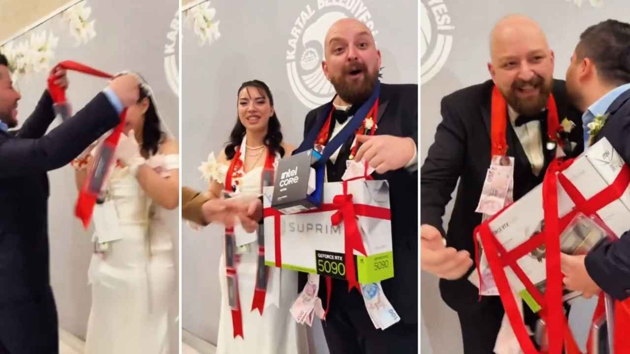 Ülkemizde düzenlenen bir düğün töreninde hediye sırası klasik takı merasiminin dışına çıktı ve konuklar doğrudan üst segment PC donanımları ile karşılaştı. Kısa sürede sosyal medyaya yansıyan görüntülerde, altın ve ziynet yerine kutulu bilgisayar parçalarının gelin ve damadın boynuna kırmızı kurdelelerle asıldığı görülüyor. İlk olarak damada beyaz kutulu MSI Suprim GeForce RTX 5090 takıldı ve ürün kırmızı kurdelelerle boyna asılarak teslim edildi. Ardından gelin için dört modüllü bir DDR5 RAM kiti kurdeleyle bir araya getirildi ve kolye formunda sunuldu. Bu sıra dışı hediyeleşme videosu, o an için “tam bir bilgisayar seti oldu” ifadesini yansıtıyor. Hediyeler arasında yer alan NVIDIA GeForce RTX 5090, Blackwell mimarisi ve 32 GB GDDR7 bellek kapasitesiyle dikkat çekiyor. Intel Core Ultra 9 285K ise 24 çekirdekli hibrit mimarisiyle yüksek performans vaat ediyor. Görüntüler, teknoloji meraklısı bir çiftin tercihini yansıtıyor ve klasik düğün takı ritüelinin yerine donanım odaklı bir hediye anlayışını ortaya koyuyor. Teknoblog ise teknoloji gündemini farklı platformlarda düzenli bir şekilde paylaşarak kullanıcılarına bilgi ve içerik sunmaya devam ediyor.