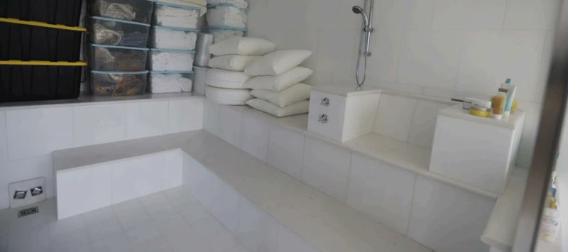 Görüntüler arasında, duvarları yastık ve havlularla doldurulmuş bir duş odası, temiz ve geniş yatak odaları ve Epstein’ın çalışma alanından kareler de bulunuyor.