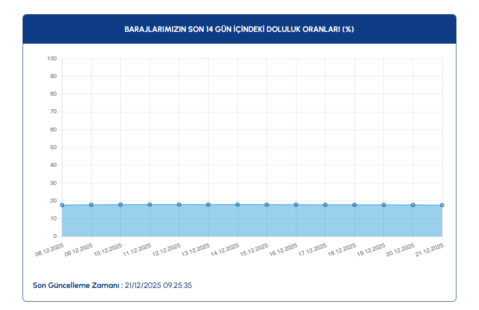 Geçtiğimiz hafta etkili olan yağışların baraj doluluk oranlarını artırması öngörülse de doluluk oranları yaklaşık yüzde 17 civarında seyretmeyi sürdürdü. Meteoroloji tahminlerine göre hafta boyunca sağanak yağışların etkili olması beklenirken, bu hafta sürecek yağışların barajlara ne ölçüde yansıyacağı ise önümüzdeki günlerde netlik kazanacak.